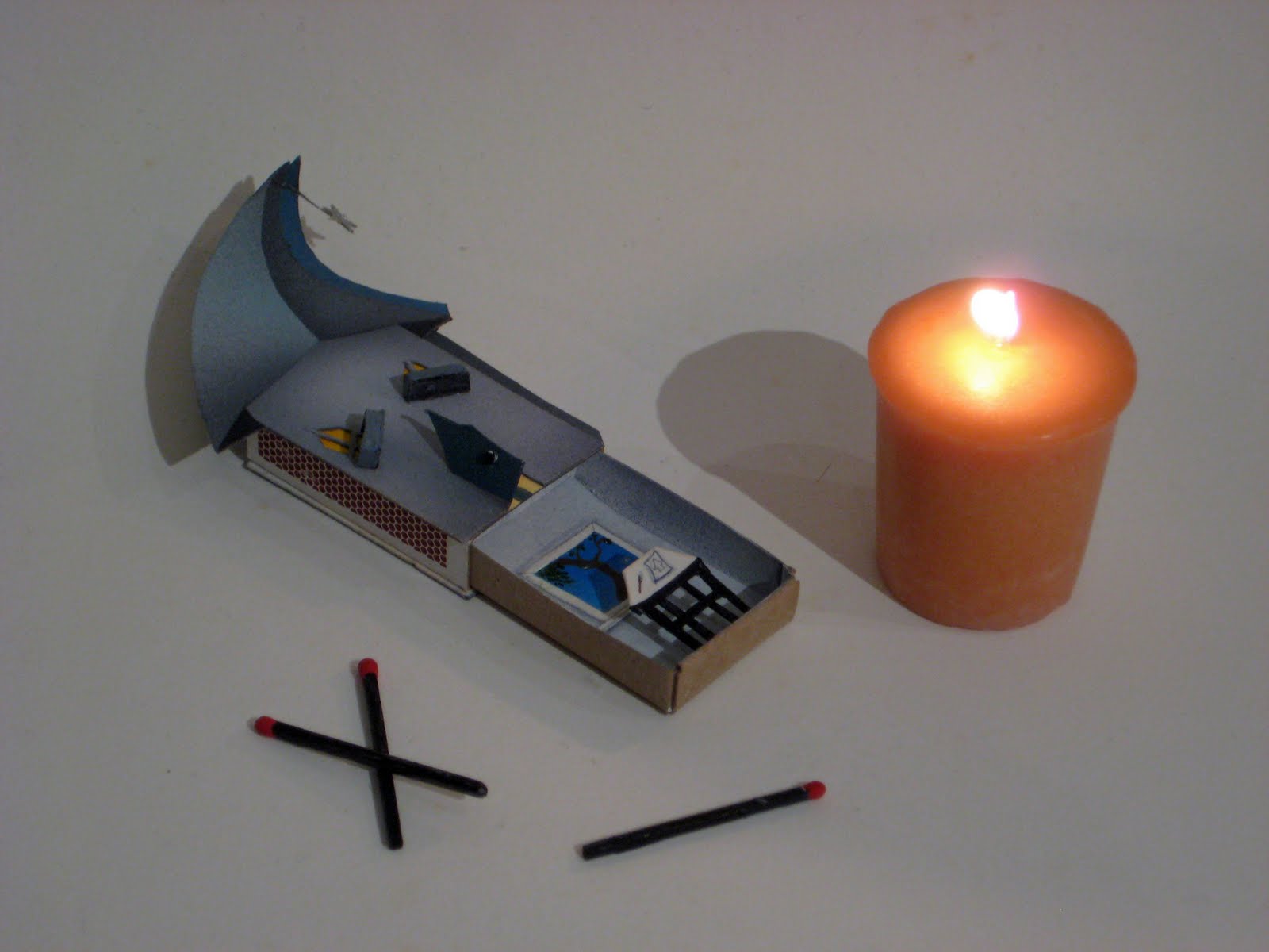 This paperhouse is painted with acrylic paint, i used thread to hang the paper star, fashioned a clay doorknob and of course it all starts with a small matchbox ;)